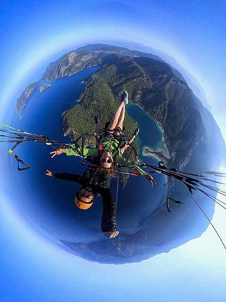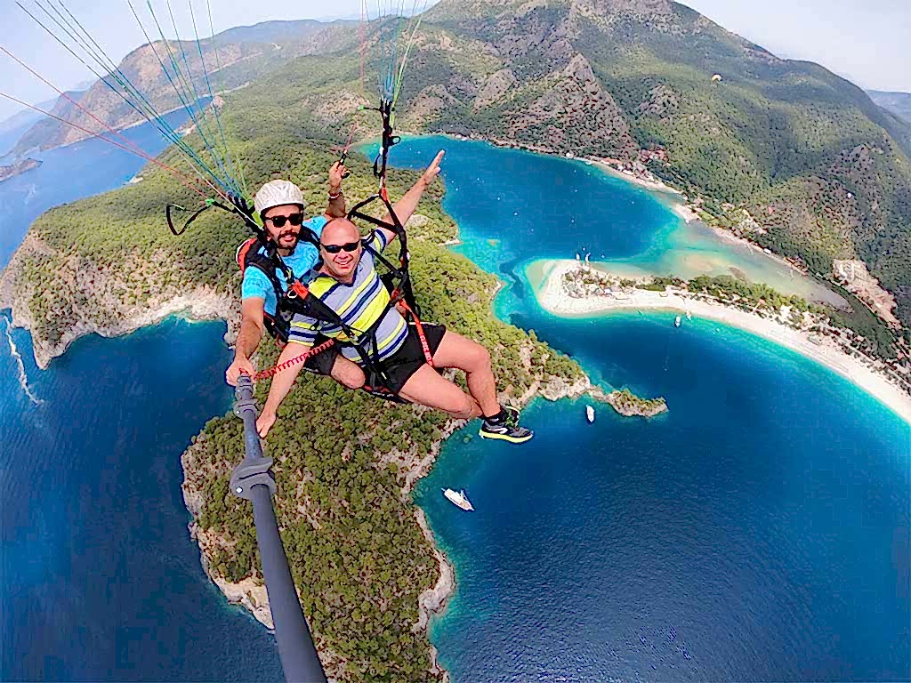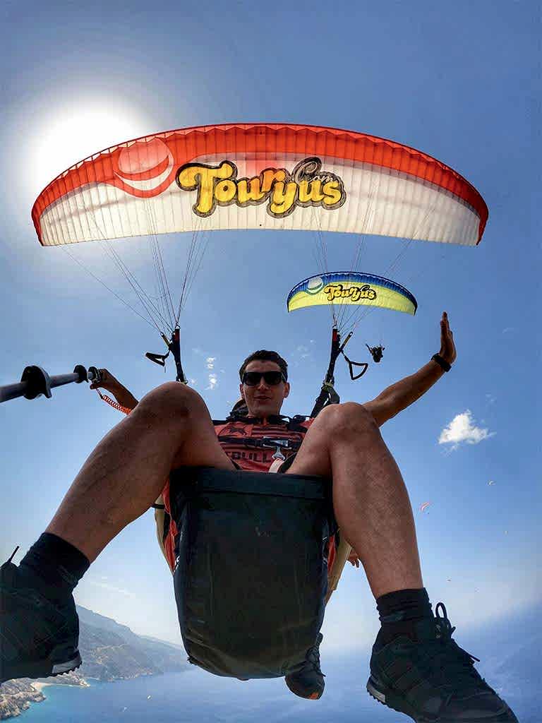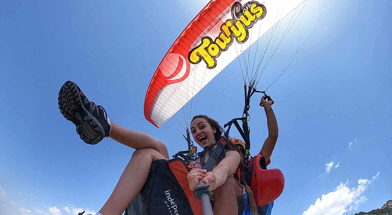 Fethiye'de kış yamaç paraşütü yaparken, sıcak kalmak için yanınızda mont veya ceket bulundurmayı unutmayın!